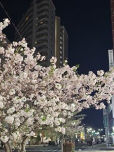 もちろん毎日の通勤での夜桜も
