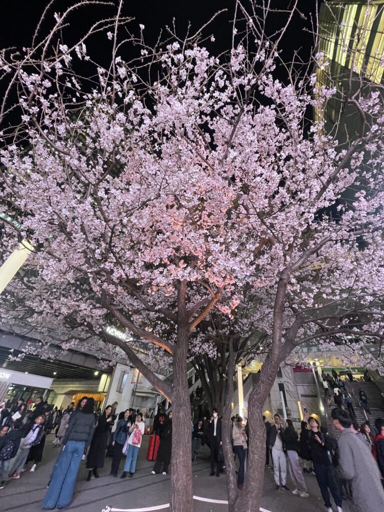 新宿では、ちょうど桜が咲き始めていて、
