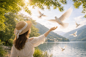 白い鳩、白鷺、カモメなど、旅先で白い鳥が印象的に