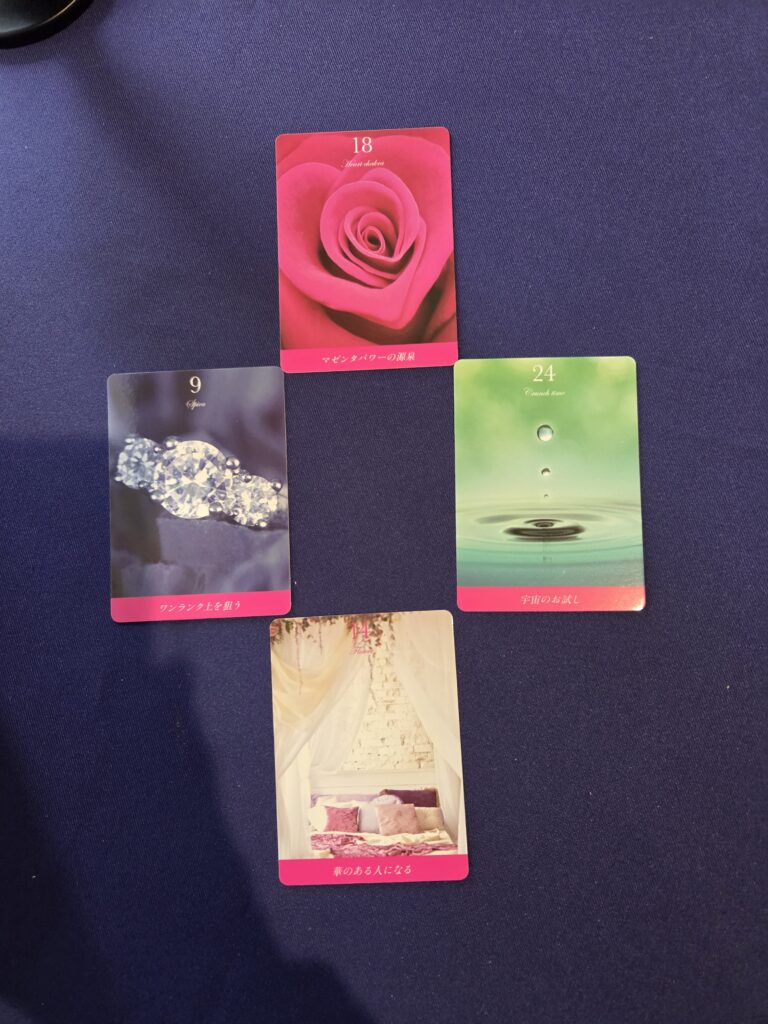 ソウルメイトを引き寄せる 2026 / 01 / 23 ブログ, マリ, 新着情報 マリ 目次 - シェア こんにちは、マリです ソウルメイトに出逢いたい でも、どうやって? その答えは、ご自身の波動を上げて、 愛を沢山持つこと でも、中々ムズい そんな貴方に朗報 マゼンタラブオラクルカードが、 お助けになります このカードを見たり、引いたり、眺めているだけで、LOVE POWER全開(笑) マゼンタカラーに愛に合いに会いに来て 貴方の恋愛運がアゲアゲになるよ « 心の温度を整えるだけで流れは変わる 【中野カリス】父の旅立ちと先輩占い師の旅立ち »